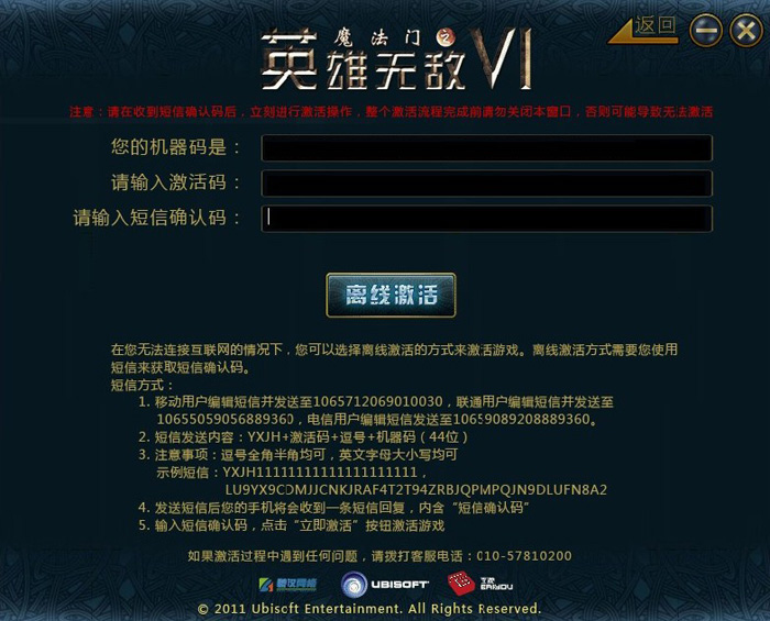 如果您无法访问互联网,您可以通过手机短信的方式进行游戏激活。