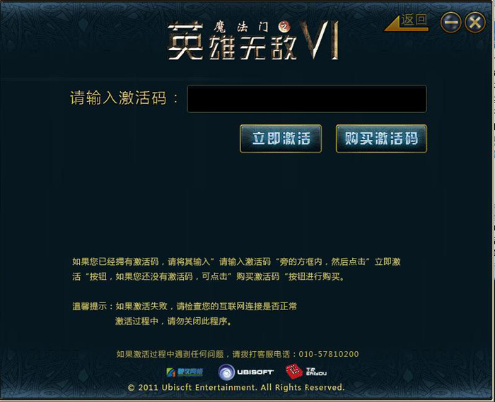 您通过购买数字版激活码以及实体版(标准版、豪华版)即可获得激活卡,激活卡上印有《英雄无敌VI》游戏激活码 数字版激活码可以通过百游官方商城、官方淘宝以及合作网站进行购买。